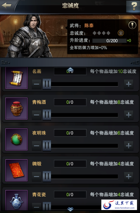 忠诚度系统目前只是适用于紫色品质及以上的武将属性加成系统,现在可以通过福利领取里面获得能够提升忠诚度的各种道具。