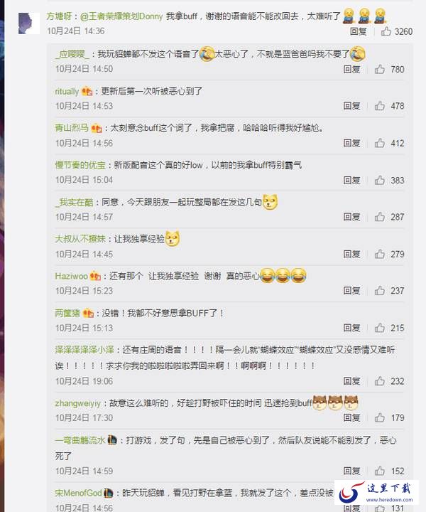 强烈要求王者荣耀官方将”我拿BUFF,谢谢“换成之前的配音,不然每次听到这个声音,真心不想给队友让红BUFF。网友们也在王者荣耀策划的微博下情愿留言。希望能看到大家的心声,快点改掉这个恶心的配音。