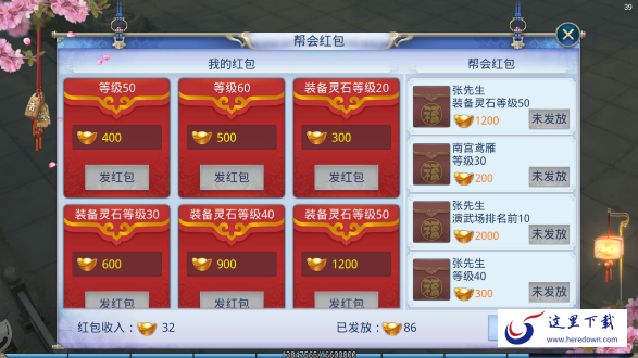 帮会成员可以互相帮助完成许多任务,如酒楼协助、帮会传功、收发红包等。在《那一剑江湖》中,帮会红包人越多,发的越多。成员在达到一定条件时,如等级、强化、排行等会触发红包奖励,红包内的金额由系统自动填充,不会消耗玩家自己的元宝,当玩家选择发放时,系统会在主界面提醒帮会成员领取,记得拼手速哦。红包发放的时间也是可以由玩家自己选择的,大家可以选在帮会晚宴或者集体活动时发放,刺激成员在线。