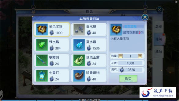 帮会商店是用帮贡值来购买所需物品的地方,让你在为帮会做出贡献的同时也能获得一定的收益。帮会商店里的物品物美价廉,种类丰富,是每日必逛的地方,但由于每日购买的数量有限,所以一定要记得每天都来购买物品哦。