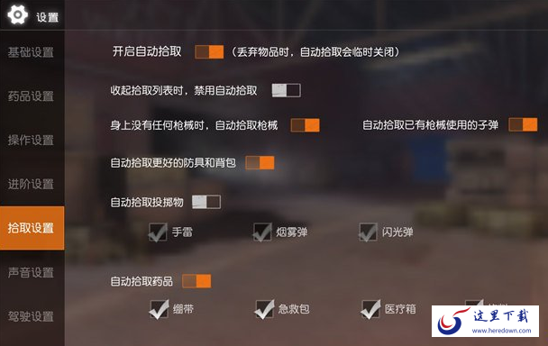 自动拾取,一般枪和药可以点上,其他看个人喜好,并不是非常的需要。