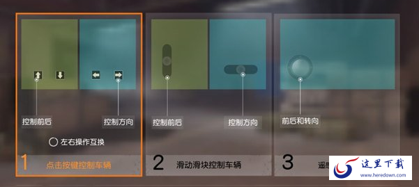 驾驶设置,三种操作方式,对于第一种和第三种比较推荐,第二种,很难想象怎么操作好,个人感觉第一种就挺好,第三种的话,可能速度方向一起操控,有点乱。