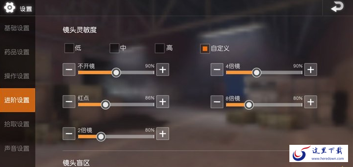 进阶设置,先选择低中高其中的一个灵敏度,在比赛中根据自己在调整适合自己最舒服的一些灵敏度。我选择的大家也可以尝试下~