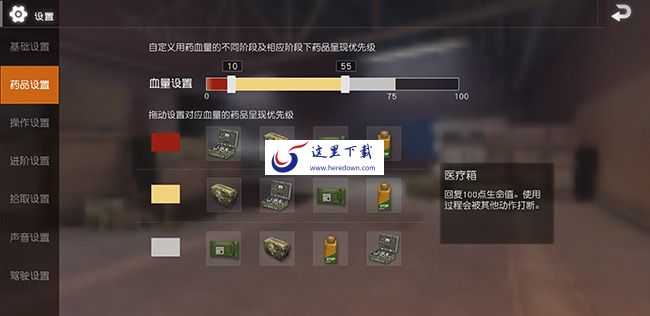 药品设置: 自定义用药量不同阶段及相应阶段下药品呈现优先级