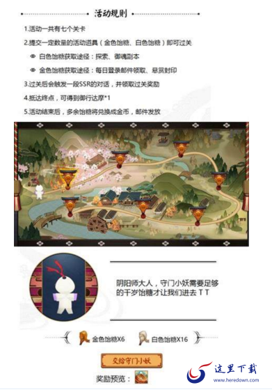 活动介绍:共有七个关卡,玩家提交一定数量的金色或者白色饴糖即可过关;