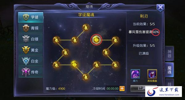 当玩家达到一定战力并完成猎魔boss挑战后,就会开启更高级的魔魂系统!只要消耗一定数量的魔力和魔晶,就能对魔魂升级,魔魂经过升级后,不仅增强属性,还能极大地提升技能伤害,让你清怪更快,伤害输出更爆炸!技能效果更