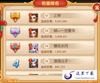 这个要重点说明一下,请点开他们的头像,查看对方的阵容。目前团队副本最好用的英雄是大禹!不要小看这个英雄,看看他的2技能,就知道有多么的牛逼了!在团本中他的输出量占90%!!!