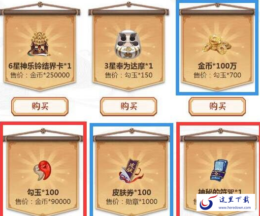 @梅之寒-jwe:红色框的推荐换,勾玉的推荐理由是:逢魔遇到俩箱子钱就回来了,一个金币箱子50勾玉换8W