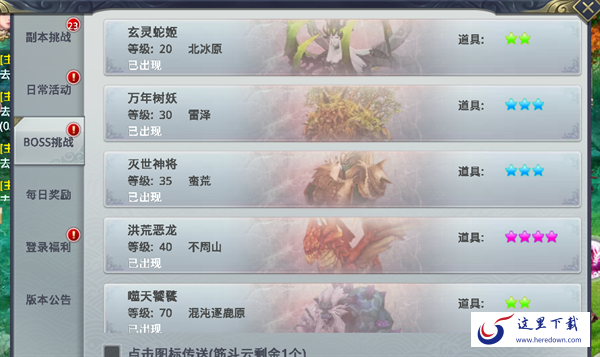 仗剑封魔每天都有世界BOSS的挑战,玩家挑战世界BOSS可以获得丰厚的奖励。