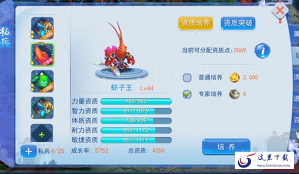 30级开启此功能。私兵培养分为普通培养(消耗金钱)专家培养(消耗元宝)。此项目的在于突破私兵天生属性极限达到另一个高度。