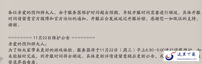 阴阳师手游为什么还进不去呢?很多玩家发现今天本该9点就维护完毕的阴阳师到现在还进不去游戏,这是为什么呢?是不是这次的维护出了什么问题呢?很多玩家都不是特别了解,今天小编便给大家带来阴阳师手游11月22日延迟维护的问题详解,一起来看看为什么今天阴阳师要维护这么久吧。