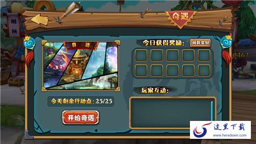 玩家在14级可以开启奇遇活动,在奇遇活动中获得各式各样未知的奖励;进入奇遇,玩家拥有一定的行动力,可以在既定的地图上向未知的方块行进,每行进一步都会消耗行动力,在进入每一个新的方块时都会遇到未知的事件。
