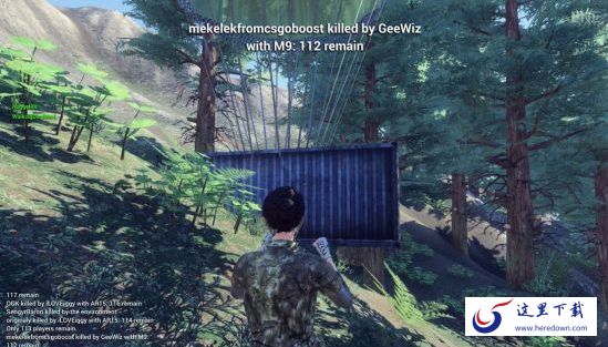 这是我开场大家都还在跳伞时,我看到有飞机丢物资箱子,我就拼命飞过去降在山区