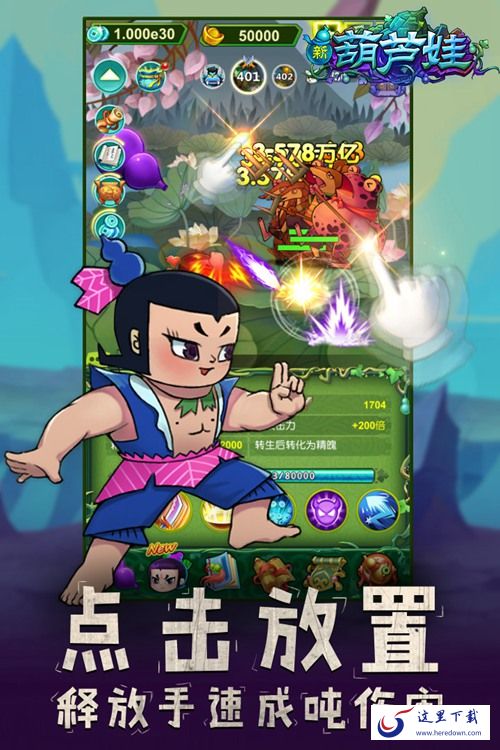 创新式休闲玩法,轻松放置就能够突破重围,点击助力挑战最快手速,点的越快伤害越高,全新玩法体验不一样的葫芦娃世界。