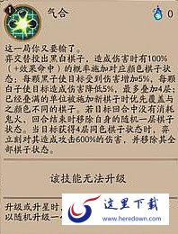 奕交替投出黑白妻子,造成伤害时有100%+(效果命中)的概率施加对应颜色棋子状态:每颗黑子使目标受到伤害增加5%,每颗白子使目标造成伤害降低5%,最多叠加4层;已经叠满的单位被施加新棋子时优先覆盖与之颜色不同的棋子,若目标回合中没有消耗鬼火,回合结束时移除自身的随机一层棋子状态。当目标获得4层同色棋子状态时,奕立刻对其造成攻击600%的伤害,并移除其全部棋子状态。