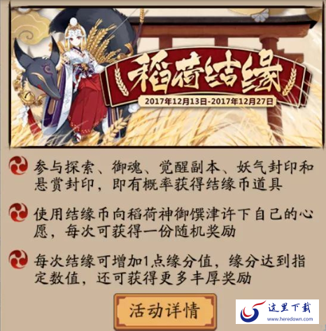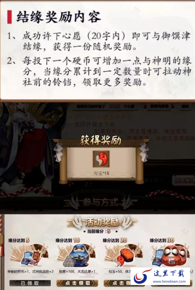 活动使用的道具是结缘币,刷图,刷御魂,做悬赏都能拿到结缘币。