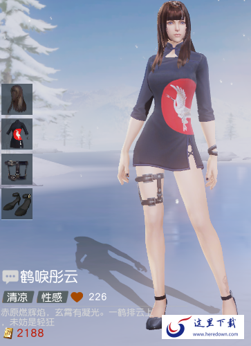 鹤唳彤云套装分为四个部件,分别是专属头发,旗袍,还有腿饰品,以及鞋子。