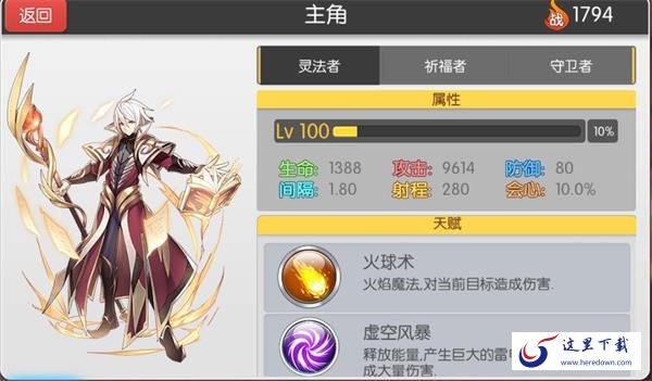 1.首先小编给大家介绍一下我们的萌新前期推图神器——灵法者,法爷。而他游戏中的描述是:擅长使用魔法攻击,能熟练的运用五大元素将敌人打得落花流水,攻击力只能用恐怖形。那么让我们来看一下他的初始数据
