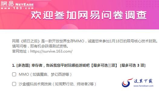 2、进入之后可以填写游戏的问卷调查,即有机会获得测试资格。