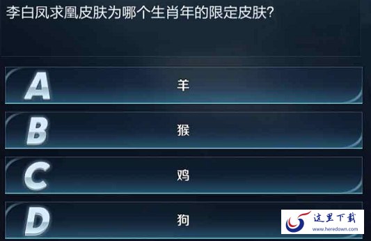 题目:李白凤求凰皮肤为哪个生肖年的限定皮肤?