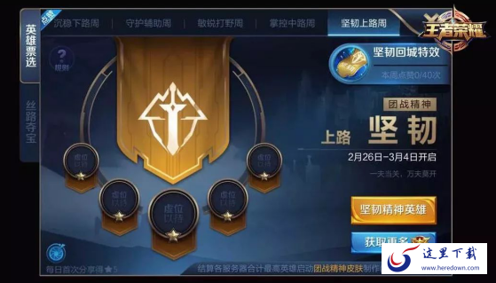 每周都会开启一种精神的兑换券,如果点赞次数达到了40次,就会给一个团战精神兑换券。然后玩家就可以兑换永久的回城特效了。