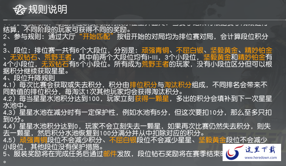 玩家参与单人、队排模式比赛后,会计算段位积分,获取相应段位。