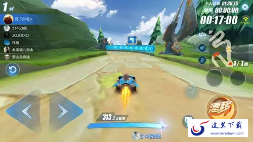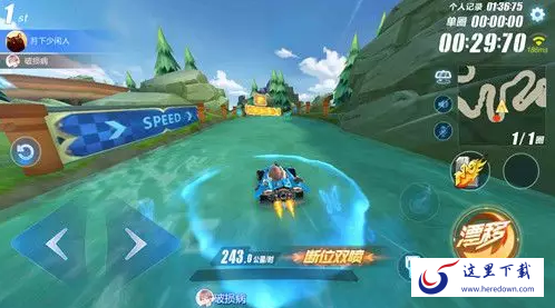 赛道中有一段水纹路面,经过这里会受到庄周的影响,车速回升非常快,即使发生碰撞也完全不用担心会卡死在路面上,只要调整好方向车速又能重回巅峰。