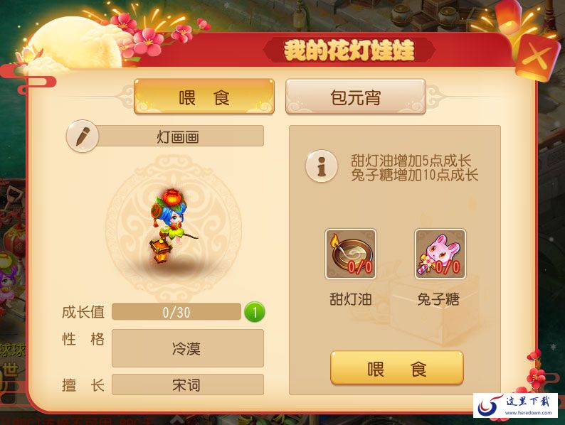 玩家在选择花灯娃娃之前最好看清楚它擅长的是什么,这个和之后猜灯谜有关系,擅长宋词的灯谜很可能就和这关系大,难度不一。