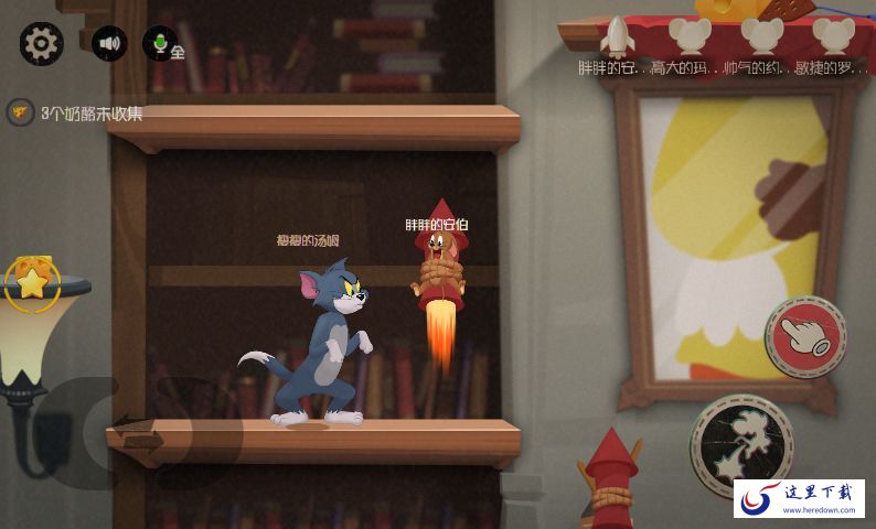 玩家之间的竞技将在房间里发生,儿时熟悉的画面在游戏中被一一重现。6个大小各异的房间被串联起来,细节设定充分还原了动画片中汤姆和杰瑞生活的房子。你能在客厅看到汤姆最喜欢的懒人沙发,小鸟翠儿的萌系小木屋,盘子里的火鸡仿佛还冒着热气。