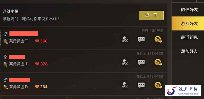 玩家进入游戏首页后,点击左下方的好友系统中,选择游戏好友查看,就会出现上图中的显示,而红色的爱心后面,就是具体的亲密度,大家可以看到亲密度越高,爱心的颜色越红。