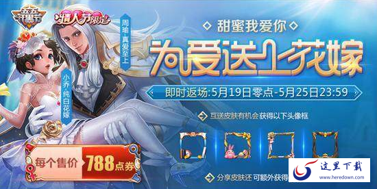 神秘商店可能会在下周周末开启,那时候刚好是520情人节,不过很多玩家想要纯白花嫁返场,这款皮肤在去年520已经返场过了,今年返场的希望不大。相比纯白花嫁而言,冰锋战神和热情桑巴更需要返场,这两款皮肤的人气更高,也从没有返场过,需要给从未返场的限定皮肤一个机会。2017年纯白花嫁返场海报如下图: