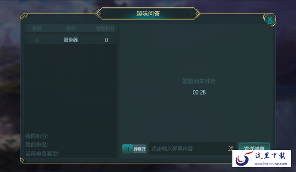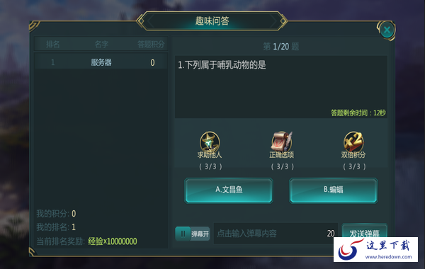 系统简述:限时性趣味活动,每日在中午12:00开启的答题活动,进入答题系统的玩家不会受到其他玩家的攻击。答题开始后,每20分钟向全服所有进入该系统的玩家从题库中随机刷新题目,共有20道题。