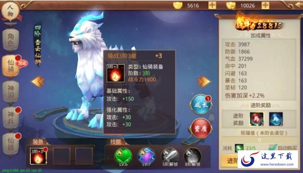 2.外观系统进阶成功后不仅能增加更多属性,还能获得更炫酷外形的高阶外观。