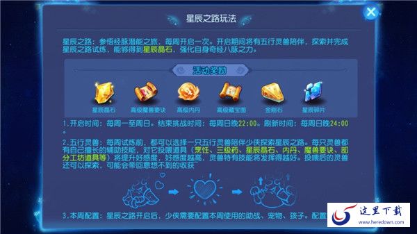 【随身物品】挑战星辰副本,随身多携带三级药、烹饪、星辰晶石、内丹、魔兽要诀、部分工坊道具,用来投喂五行灵兽以提升其好感度,好感度越高,每场试炼结束后的收获可能也会越好哦!