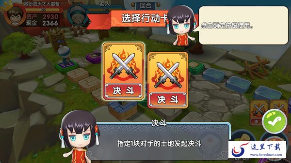 只要你获得了决斗卡,就可以选择对手的一块土地发起决斗了