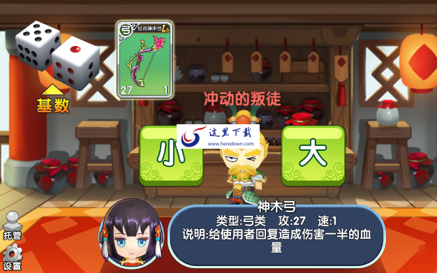 在酒馆玩法中,玩家每次需要根据左上角给出的基础点数(图中为6点)来猜下一次投掷出的2个骰子的点数之和是大于还是小于基础点数。猜对的话可以获得随机给出的战斗卡,点数一样时也算玩家猜对。猜对后玩家还可以选择是否继续猜大小的游戏,继续的话可以有机会再赢一张战斗卡,最多可以连续赢取5张战斗卡,但只要猜错一次就只能空手而归。
