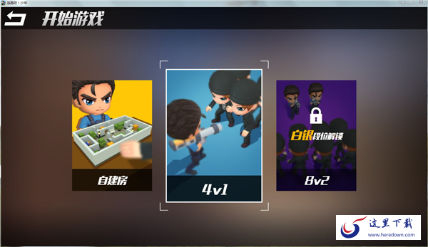 对于新手玩家而言,在达到白银段位前,仅开放“自建房”和“4V1”两种模式,点击“4V1”按钮就可以进入游戏准备界面了。想要体验更多玩法,大家可要努力升级哦!