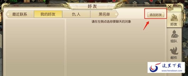 在游戏中当你在江湖闯荡,偶遇知音,点击他的人物后,在点击上方的头像即可选择添加好友了哦