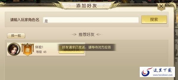 打开好友列表,点击右上角的添加好友,输入你的好友角色名称,点击搜索后便会显示添加好友啦~