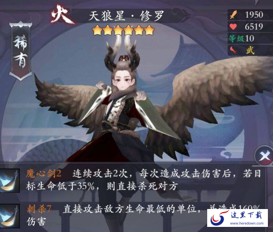 火阵容,现在主流都是6火阵容,原因是有法宝阴阳镜,要求3个火妖灵。强势卡有修罗,血翅,银角,影舞,魔音,罗刹其中修罗影舞卡难获得。