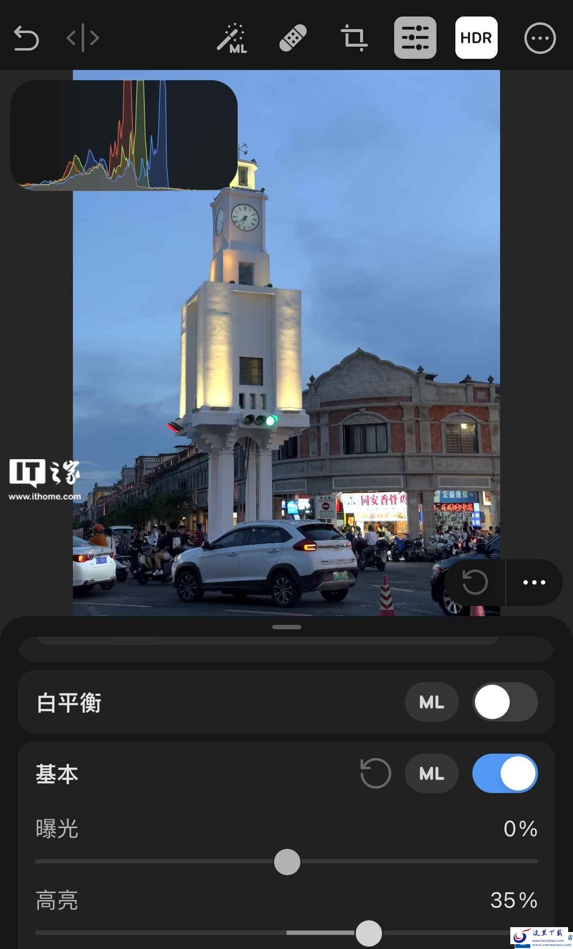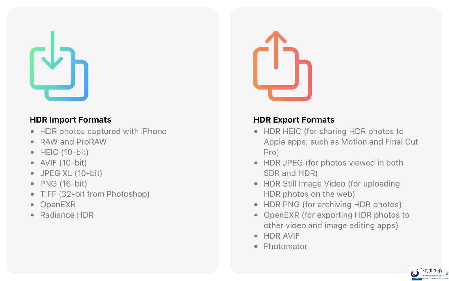 官方介绍称,Photomator 3.2 号称提供了一个全面的 HDR 照片编辑工作流程,允许用户导入、编辑和导出 HDR 照片(包含 RAW、ProRAW 格式),并支持 AI 放大(Super Resolution)、图片污渍修复(Repair)等常见功能,但无法精确调整 HDR 高亮部分亮度。
