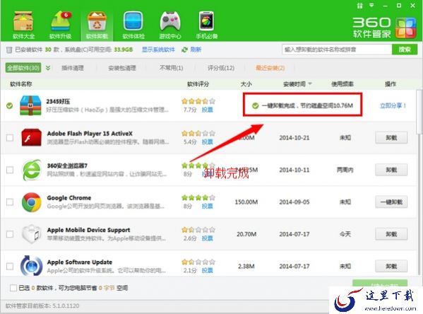电脑装上360安全卫士,找到360软件管家--软件卸载--一键卸载即可