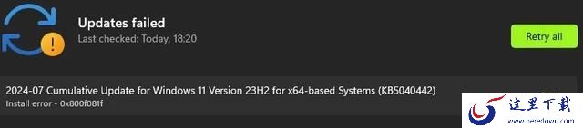 根据网友的反馈,在安装 Windows 11 七月累积更新 KB5040442 过程中,遇到 0x80d02002、0x800f081f、0x80073cf3 等错误。