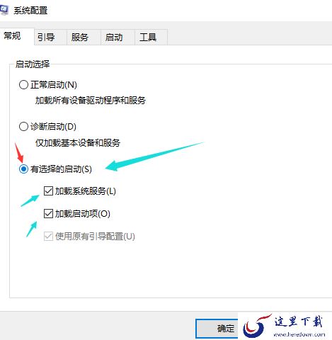 5、在打开的窗口中,将“常规”选项下方的“有选择的启动”及下方的选项都勾选上。