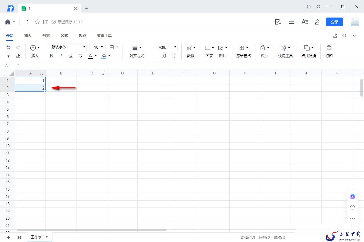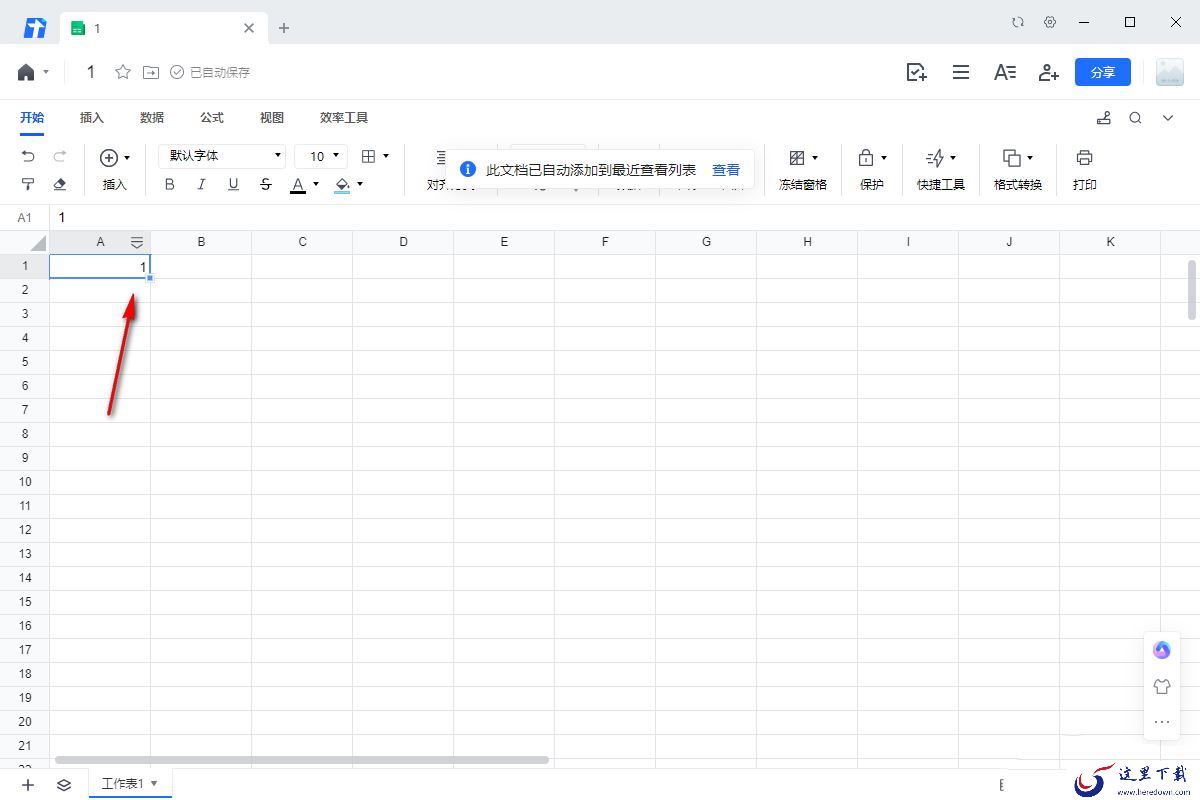 2.这时即可进入到页面中,点击其中一个单元格,随便输入一个数字,如图所示。
