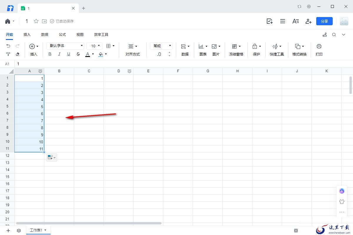 5.那么我们刚刚的数字就会马上变成序列填充显示出来,如图所示。