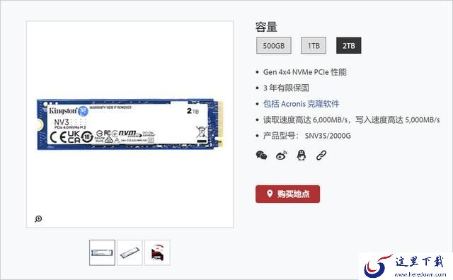 金士顿近期在其官方网站上面上架了NV3 PCIe 4.0固态硬盘,其采用标准的2280尺寸、M.2接口设计,至高连续读取速度可达6000MB/s,至高连续写入速度可达5000MB/s,属于主流定位的PCIe4.0固态硬盘。
