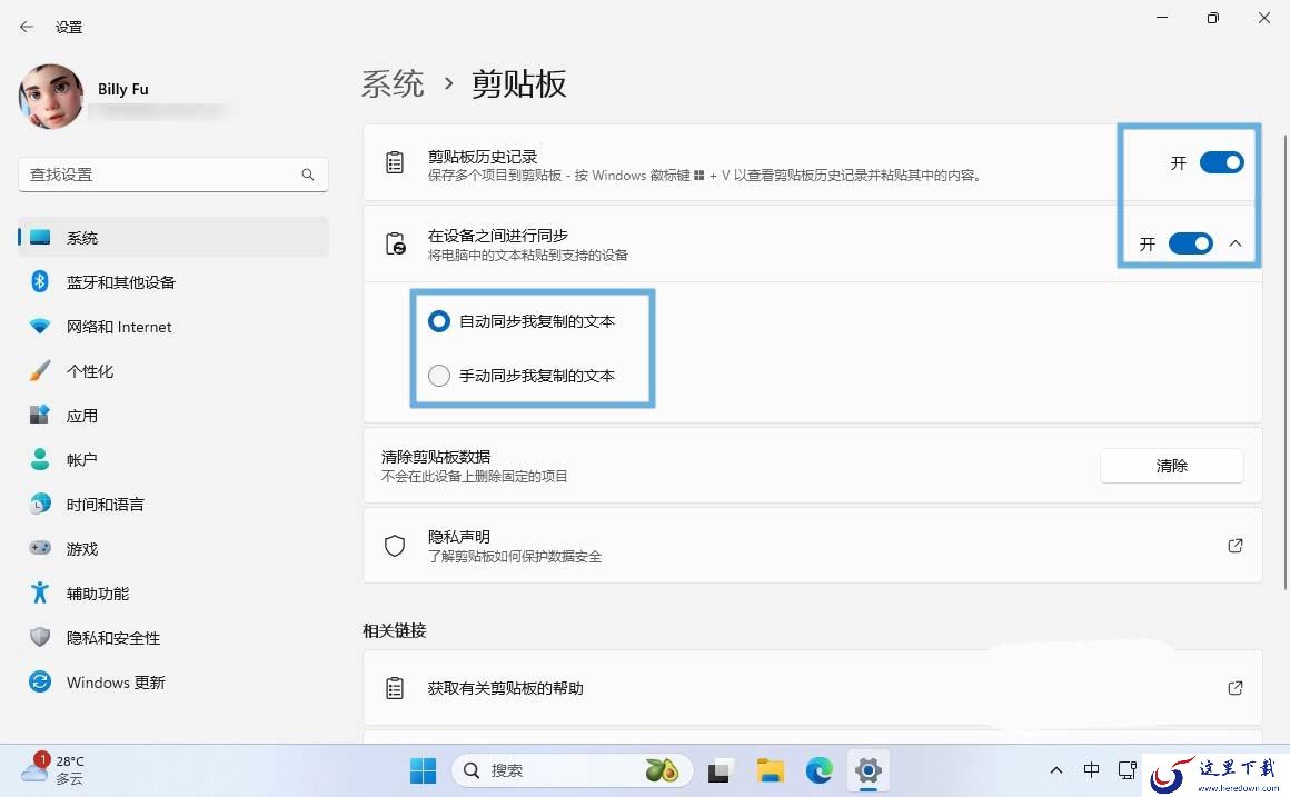通过「设置」启用 Windows 11 剪贴板同步