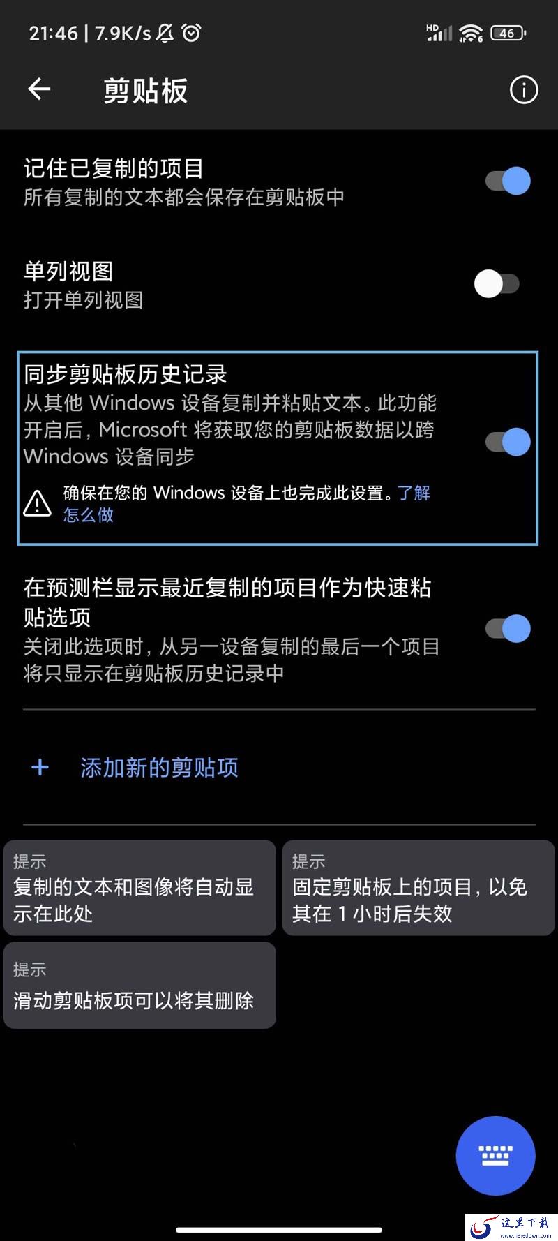 Swiftkey 同步剪贴板历史记录