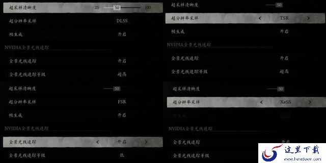 一是超分辨率采样有DLSS、TSR(Temporal Super Resolution)、FSR (FidelityFX Super Resolution)和XeSS四种模式可选,分别涵盖了当前市面上的NVIDIA、AMD和intel显卡。光线追踪结合实际的显卡性能选择是否开始以及对应参数的调节,全景光线追踪等级有三档可选,分别是低、中和超高,不知道为什么没有高这一选项。这些选项里面,超采样清晰度和光线追踪等级会严重影响到帧率变动,调节的时候要留意。